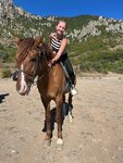 Лошади все ухоженные, не худые. Амуниция для лошади оставляет желать лучшего (но видимо это здешний колорит). Из экипировки ничего не выдали, даже шлема нет. Инструктаж тоже ни о чем. Всю прогулку сопровождают дети-инструктора (тоже без шлема, в сланцах, с голыми ногами) - за это все -1 звезда. Прогулка была куплена по экскурсионному билету, поэтому на саму гору мы не поднимались, а лишь гуляли у подножья. Примерно 1-1,5 часа. Для человека занимающегося конным спортом - это просто шаговая прогулка. Для начинающего или кто первый раз - это захватывающее путешествие. В целом неплохо, один раз съездить можно, но цена высоковата 2500р( Хотелось погулять около этих камней похожих на фигуры, а не любоваться ими издалека.