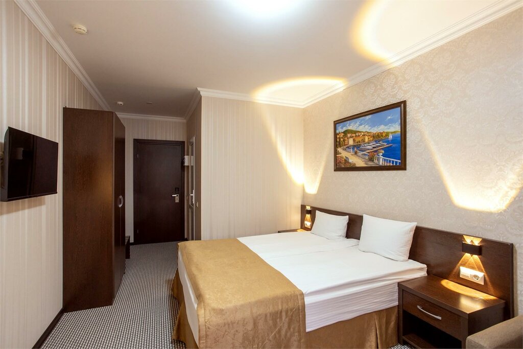 Данный отель выбрали рандомно, посмотрели на оценки в Яндексе и наличием свободного номера (приезжали погулять по Геленджику и решили остаться спонтанно). Остановились на одну ночь. Расположение нормальное, пешком до набережной не спеша минут 10-15, рядом все магазины есть, парковка широкая с местами проблем нет, есть лифт в отеле, в номере достаточно чисто и аккуратно без посторонних запахов, косметические принадлежности включая зубную щетку и пасту имеются, кулер с водой на этаже. По минусам - территории нет конечно, со всех сторон тоже отели и жилой дом буквально в метрах от окон, оформление в темных тонах - давит по мне, если брать номер с балкончиком как мы, то особо смысла нет - все очень близко к соседям расположено «как на витрине». Не хватает тапочек, заменил бы ковровое покрытие именно в 214 номере -пятна не очень эстетически выглядят, освещение плохое по мне и его мало в номере. Если кто-то ходит под окнами и разговаривает , то на втором этаже это ощущается как у вас в спальне. Рядом какое-то заведение-музыку было слышно хорошо, к счастью до 00:00 все прекратилось 😎 Подведя итог - в целом место на твердую 4-ку, остановиться на 1-2 ночи максимум можно, при условии что придется только переночевать, как мы. Из окон на территории достаточно большой участок есть, почему его не благоустроить для гостей 🙄ну это так наблюдения и пожелания.