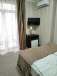 Отличный отель. Проживаем каждый раз, когда приезжаем в город, по работе и на отдых. До моря пешком 15-20 минут по прямой вниз, в самый для меня комфортный пляж с песком и скамеечками для посидеть у моря. На самом деле это большой плюс, так как нет шума от набережной, отель находится в жилом секторе. Рядом много магазинов, аптеки, роллы прямо в соседнем здании, частный спортзал за углом. Парковка вместительная, всегда есть места для авто без предварительной брони. Завтраки - самые простые, но вкусные в моей жизни. Я как дома у мамы кушаю. Кто бегает по утрам - выбежали и побежали по набережной. Номера чистые, очень простые, без излишка и доп оснащения. Для пребывания со своими привычными вещами, всего достаточно. Пожелания, возникающие каждый раз - замените выгоревший плакат на стене на входе справа у ворот, озелените ваш дворик, может здание украсить диким виноградом, поставьте платный кофе и десерты, скамеечки. Очень не хватает подобного тихого досуга на самой территории, как в японском саду в Краснодаре. В эту поездку шли дожди, и мы бы с удовольствием провели бы время в саду во дворике с чашечкой кофе на территории. Потенциал ведь есть у двора в гостинице. И второе - рассмотрите возможность включать кинофильмы, познавательные передачи или мультики на завтрак, вместо передач первого канала, или муз тв. Благодарим за отдых, успехов в развитии и процветания.