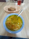 Нереальная вкуснятина. Порции огромные, все вкусное, свежее. Персонал очень доброжелательный. Приготовления блюд очень быстрое. Брала харчо безумно вкусное и оливье. А драники вобще удивили, как два огромных чебурека, еще и с начинкой мясной. Один забрали с собой🧡 Есть уборная, душ, баня, парковка для дальнобойщиков(сна). На 1000 вдвоем можно объесться!