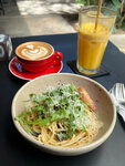 Good coffee, duck pasta and croissants 🤌🏻 If you are nearby, you can stop by for breakfast or lunch. Both visits had a full boarding inside, but there were always a few empty seats outside. There is a special menu for Ramadan.