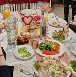 Место в кафе хватает для компании в 30-35 человек. Были на корпоративной вечеринке, есть место для танцев, но кухня посредственная, салаты жирно-майонезные, блюда как из 90-х. Мясо по французки было как из пергамента, жульен безвкусный. И самое главное соложно снимать фото-видео ибо сумрак, не красивый интерьер...