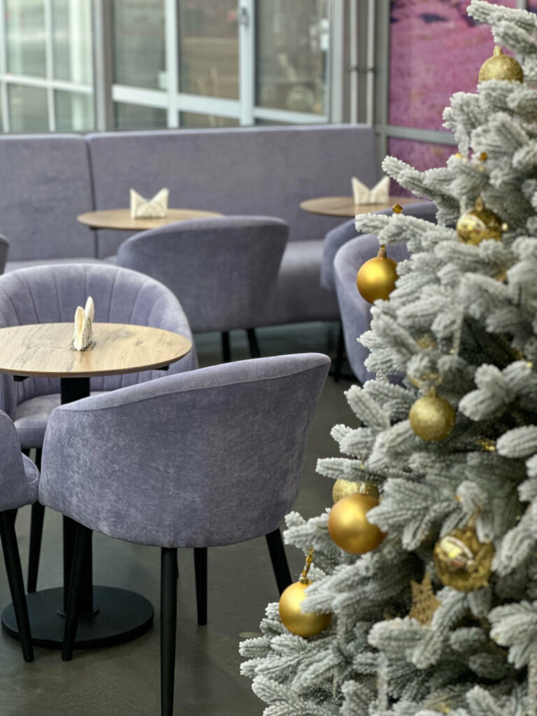 Преобразился кафетерий «Ferma”. Теперь здесь уютно можно посидеть, попить кофе с десертами. Красивый дизайн помещения, предновогодняя атмосфера, в е стильно, красиво. Красивая фотопечать на стенах лавандовых полей прекрасно сочетается с сиреневыми креслами. Всегда заходим выпить чашечку латте и Флэт Уайта после шопинга в Метро.
