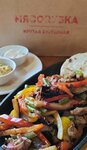 Laconic interior, hamburgers on the menu, a couple of salads, soups, desserts. They took it: caesar, classic hamburger, strips, coffee, fajitos - everything was cooked quickly and it was delicious! There were no desserts :(