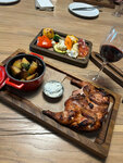 И ели и работали! Заведение располагает несколькими залами для посещения, мы были в малом банкетном с собственной верандой на третьем этаже! В силу характера своей работы бываю в различных гастрономических местах, украшая их к свадебным торжествам. На обед сделали командный заказ на блюда из основного меню, первое что бросилось в глаза - это интересная подача, мой выбор пал на куриную грудку с кабачками на гриле, принесли на темной слайсе тарелке, рядом с блюдом щепотка гималайской соли и специй, ризотто с грибами улетело практически сразу, приятные, вежливый и участливый персонал, есть парковка. Единственный момент залы ресторана расположены на 1, 2 и 3 этажах, прекрасная широкая интерьерная лестница, как произведение искусства, на каждом пролете можно делать фотосессии) но нет лифта