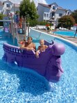 Прекрасное место отдыха с детьми. С первой минуты мы в восторге. Девушка при заселение выдала нам ключи от прекрасного номера. Номер большой, сухой, чистый, с большим балконом, для двоих просто отлично, а самое главное по моей просьбе первый этаж и всё в шаговой доступности (столовая, пляж, бассейн и аква парк). Питание на высшем уравнене, благодаря ему я скинула лишние килограммы, так что из всего надо выбирать только плюсы. Дискотека каждый день, аниматоры потресающие, дети подростки уезжали со слезами на глазах, в последний вечер, все рыдали. Фильмы крутят на улице, а самое главное море в шаговой доступности. Около пляжа потресающее кафе, очень вкусно и с доступными ценами. Спасибо за прекрасный отдых