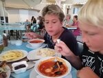 Первый раз посетил пансионат Фея-2. Читаю другие отзывы и мы правда были в 2 разных местах, особенно когда читаешь про "домашнюю еду". Жаль, что кто-то так питается. Итак номер на 4х представлял из себя комнату с 2спальной кроватью, старым диваном, который давно просится на помойку и раскладушки. Самое забавное, что у нас с мужем был туалетный столик, без него куда на отдыхе, а детям достался телик и кондиционер, который не работал. Уборка в комнате только если повезёт. Мечтала где-то раздобыть веник, чтобы выметать весь мелкий песок, но не судьба. Столовая - это отдельные изыски. Из молочки ничего не было. Сыр, йогурт, кислое молоко - ничего не было. Был прогорклый творог. Обед один и тот же суп под разными названиями. Добавят в суп фасоль, то это борщ такой, ничего не добавят, но напишут со свежей капустой, то это борщ такой, либо кинут 3 гриба, то это ещё одна разновидность супа только с новым названием. В общем у этого суп была одна основа и миллион названий. Котлеты сделаны непойми из чего, есть детям запретила, ели только куски курицы, хотя на всех её не хватало. Из гарнира дешёвые макароны и рис, пюре встретили, как праздник. Персонала явно не хватает. Вилок, ложек можно ждать долго. Не выдержали дошли до директора Фея-2, так он представился. На наши претензии, а что вы хотите за 700р в день на питание? 700!!! Задумайтесь, когда соберётесь туда. В последний день дали сыр, но оказалось он умер вчера. У него был странный привкус. Нет мы не питаемся пармезанами, но обычный российский сыр и то намного лучше того, что дали. Пляж и бассейн нам понравились. Песочек мелкий, заход плавный, долго мелководье. Зонт и лежаки платно. Мы брали только зонт 300р. Резюме такое. Если поедем в следующий раз будем брать номер с двумя с/у, в таких номерах полноценные кровати у всех и кондиционеры в каждой комнате, но не всегда работающие. Питание только на улице в столовых, которых много. Цены в них нормальные, а главное вкусно. Поэтому последние 5 дней, а предпочитали столовые. Ну и немного фотографий. Забыла упомянуть про проблемы с ремонтом, но это мелочи.