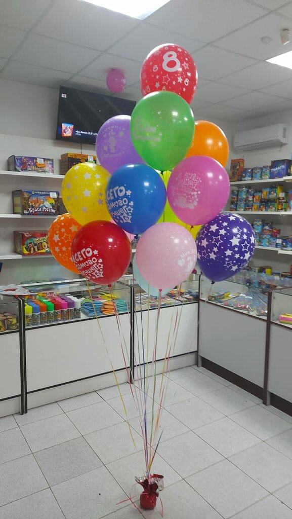 Отличный товар и отличные цены. Шарики с гелием одни из самых дешёвых в городе. Надувают быстро. Не очень большой выбор вариантов, но несколько разных видов найдется на любое событие. Выбор фейерверков и прочей пиротехники тоже есть.