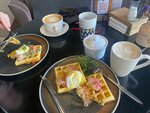 Классная атмосфера ❤️ дружелюбный персонал. Вкусный кофе, мои любимые вафли 🤤