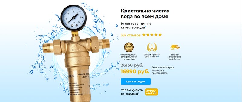 После консультации с менеджером заказала фильтр. В итоге выяснилось, что он не подойдет под размер труб. То, что в компании называется "Служба заботы" - просто ужас. Общалась в итоге только с тем же менеджером по продажам, так как служба не реагирует на сообщения. Договорилась о замене и возврате излишне уплаченных денег. Все сроки по возврату уже вышли - до сих пор жду. Ужасный сервис. Лишь бы продать. Телефон на сайте - просто фикция, на него никто не отвечает. Не рекомендую покупать в компании фильтры, если не уверены на все 100, что покупаете именно то, что нужно.