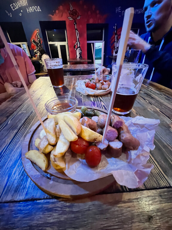 Был там 27.05.2023, пиво неплохое Вайс , но и не самое лучшее. Тяжело пьется пиво "Трудный день" :насыщенное и плотное тело. Получилось так , что попали мы с компанией в тот день , когда парень ,прекрасно играющий на гитаре, праздновал там свой ДР. Весело и не понятно что происходит , что за музыку он играет - тоже оставалось загадкой. По еде - прекрасный жареный сыр и луковые кольца (Поварам бы премию ) Очень удобная система - оплатил и тебе выдают твой заказ (минимум ожидания , максимум результата ) Сан узел один , при полной посадке ждать бывает долго . Дизайн самого помещения - очень круто : каждый , кто участвовал в создании концепта - большой профессионал своего дела . P.S Вернусь сюда ещё раз за жареным сыром .