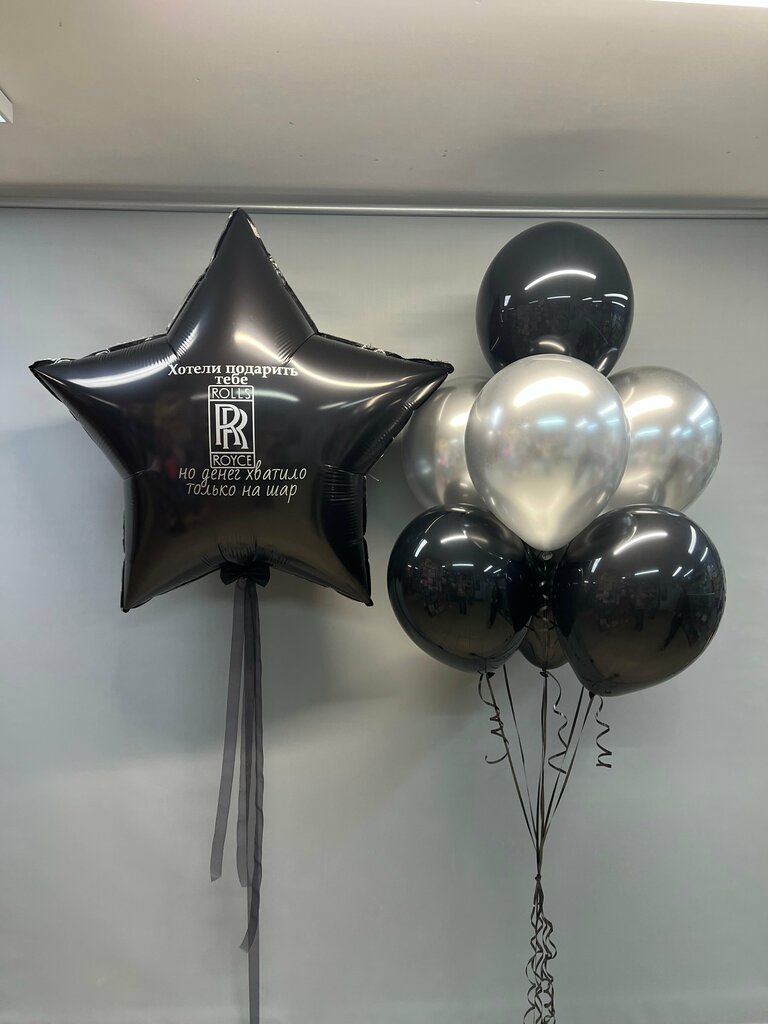 Шар 18" звезда 3 шт, шар 12" хром 14 шт, грузик 3 шт. цветовая гамма может изменяться на Ваш вкус