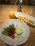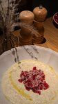 Приятный стильный интерьер, хорошая фоновая музыка. Вкусная еда - ризотто с тар таром из говядины - все именно так, как должно быть - рис Аль Денте , мясо - рубленое. Очень вкусно. Салат с рукколой и Пармой- просто топ. Оч рекомендую оба блюда. И цены - приятно радуют :))