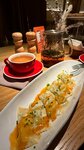 На входе девушка сразу проводит за стол, не предлагает оставить верхнюю одежду в гардеробе. Пришлось уточнить есть ли он тут вообще. Были в пятницу вечером, удивились почти полностью пустому залу. При изучении коктейльной карты возник вопрос, что именно за ингредиент в составе напитка.Официант сразу ответить не смог, но после уточнил на баре и вернулся к нам. Из блюд больше всего понравилось сырное ризотто с тартаром, прям идеально приготовлено! Пицца хорошая, приятное тесто. Ньокки с говяжей щекой тоже были вкусными, мясо нежное, порция не маленькая. Не понравился вителло тоннато.Очень простой соус, как будто и не тунцовый вовсе, мало вкуса в нем.