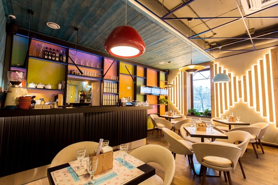 Плюс - удобство расположения, уютный дизайн, приятные акции типа "Женский день" или скидка на День рождения. Минусы - этот ресторан не про еду и скорость обслуживания) Были во вторник вечером, семьёй 5 человек...Чай несли 20 минут, коктейли несли столько же...и что характерно, все не одновременно, а по готовности, на что к концу вечера мы уже шутили: ни разу не смогли под тост чокнуться бокалами все вместе) С едой та же история, несли так долго, что мы забыли что заказали. И порции маленькие: хачапури как детская, садж мясной (блюдо на компанию ) реально на двух человек максимум. Спросили, что из горячего смогут дополнительно принести быстро - честно ответили, что горячий цех зашивается и возьмите сет суши. И это все в будний день при пустом фактически зале, вместе с нами только женская компания рядом сидела и в соседнем зале пара человек. Что в выходные творится - боюсь думать . В общем, кофе попить или пиво там - ок, а так не рекомендую.