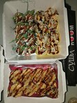 Заказывали доставку, пицца страчателла с креветками очень вкусная, тесто и начинка - все идеально, еще как-то роллы заказывали, названия не помню, но сделаны были хорошо, не разваливались, вкусные. Однозначно рекомендую это место