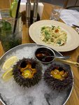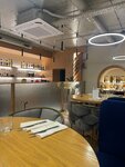 Плюсы: чисто, всё новенькое, комфортно, просторно, приятно, светло, персонал отличный, приносят блюда супер быстро. Минусы: не хватает зонирования между столиками. В меню нет изображений блюд и граммовки. Например одно из блюд осьминог с мятым картофелем, а приносят одно шюпальце и мятый картофель на 150 грамм. Остальные блюда также. Поели на 5 тысяч, но не наелись