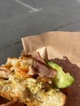 Меняю с прошлой пятерки на твердую тройку. Привела друзей специально поесть именно сюда, потому что в прошлый раз была в восторге, хотелось поделиться. И… осталась раздосадована. Заказывая бургер с креветками, беконом и сладким чили соусом я ожидала получить классический поджаренный сыро-копченый бекон, а не варено-копченую грудинку, которую просто терпеть не могу. Я могу понять уместность грудинки в бутерброде, но её вареный вкус превратил этот бургер в «докторский». Несколько вареных несоленых креветок на ее фоне совершенно не прочитались, а вместо сладкого чили-соуса в бургере почему-то был светлый классический соус, вкусный, но это совсем не то, что было заявлено. Поэтому понравилась в бургере только булка. Шаварма была плохо перемешана, почти отсутсвовали помидоры, как уже, в принципе, и хорошее настроение.
