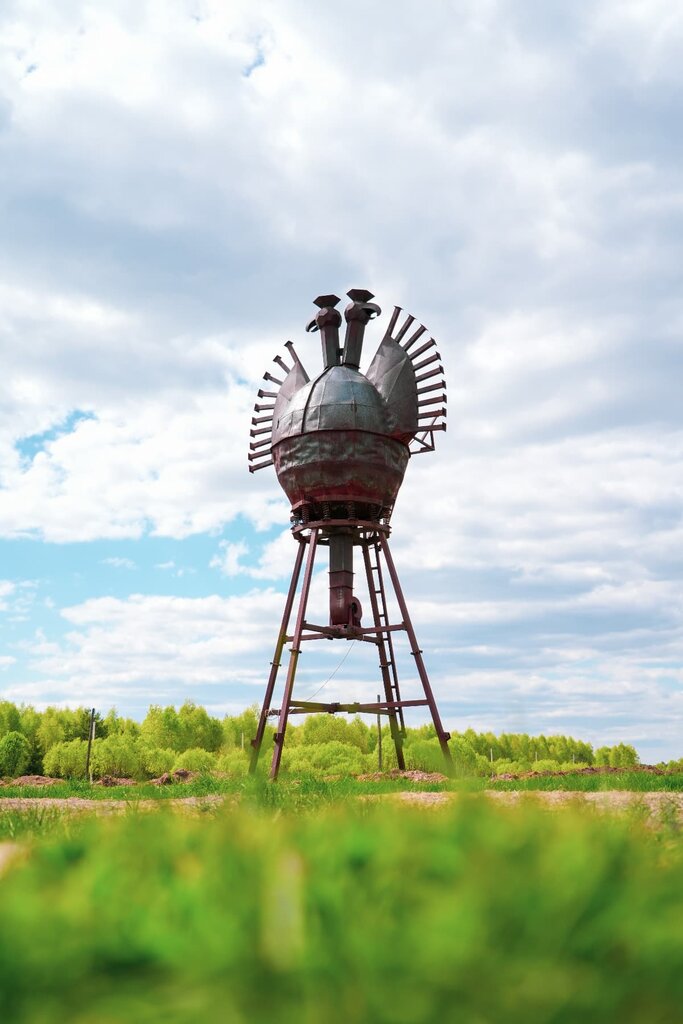 Груда металла в форме двуглавого орла ничем не примечательна и никак не впечатлила. Возможно столбы пламени вместо крыльевого оперения смотрелись бы эффектнее, чем просто металлические "отростки", но арт объект выглядит так и не иначе, поэтому моя оценка не высока. Посмотрел и ушел. Вот в принципе и все. Из плюсов: находится рядом с кафе и футбольным полем, далеко ходить не придется. Есть парковка и уборная с раковинами для мытья рук. В относительной близости расположены дома для проживания Из минусов: хотелось увидеть что-то ещё, кроме металлической конструкции на высоких "ножках"