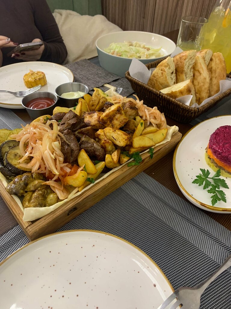 It's a pretty good place. In my opinion, the menu is too large (pizza, kebabs, rolls, pasta, etc.), which causes problems with the execution of some dishes. We had a business dinner, tried a lot of items from the menu. I didn't like the rolls and pizza. Kebabs, salads, side dishes, desserts-quite and very much. They serve them fast enough, they try