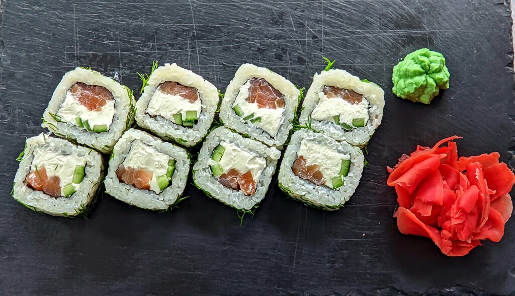 Вкусные роллы, пицца, но через раз, в Филадельфию роллы один раз заказывали было хорошо красной рыбкой обернуты, а в другой раз настолько тонюсенькая, что аж светилась, и пиццу так же заказывали морскую с креветками, так в один раз хорошо всего положили, а в другой раз совсем немного, две больших креветки разрезали вдоль на пополам ... В общем вкусно, но наверное зависит от смены...