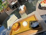 -1 бал за девушку у входа, светленькая, не высокая. Ни здравствуйте ни досвидания! Лицо не довольное до безумия! Находится было очень не приятно из за нее. Были 9.08 в 14.00. Всё потрясающе вкусно и еда и напитки! Дизайн шикарный! Территория тоже! Не много не понравилось что ограничили в столе, что бронь после нас была и в 16.00 попросили освободить стол, уезжали с территории в 17.10 стол так и был свободен да и тьма столов были свободны и на улице и в самом ресторане, жаль что не предлодили альтернативу и другой стол и не позволило ребенку заказать блинчик с икрой. В планах посетить еще не однократно это место! Официант кстати тоже очень безумно приятная и вежливая девушка, очень понравилось обслуживание!