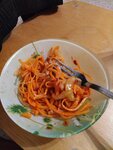 Купил хе из щуки, 300 грамм. Из них щуки я нашёл грамм 120-150. Всегда у них брал, была рыба, а сейчас я купил морковь по-корейски с рыбным душком.