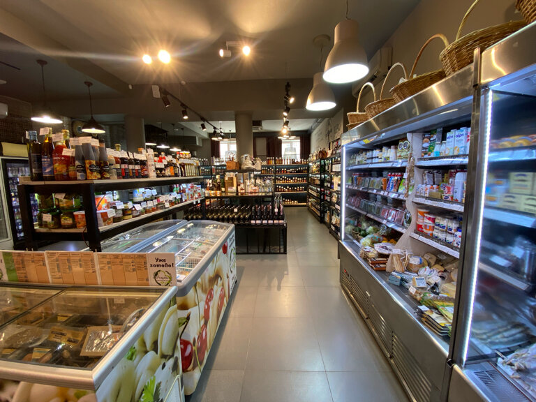 Можно найти вкусняшки-деликатесы не встречающиеся в других магазинах .Тут же очень хорошее кафе ,с бизнес-ланчем в том числе . Отличная выпечка и на вынос .