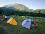 Хороший приют, много что есть: река для стирки и мытья посуды, ручей с питьевой водой, душ с водой из этого же ручья (горячий душ и баня за отдельную плату), костровища для приготовления еды и посиделок, общая кухня-шатёр, место для умывания и туалеты, по периметру натянут электрический забор от животных. Как я понял строится еще сейчас мини отель на территории (но это не точно). Вид шикарный, место для палаток более менее ровное, можно арендовать деревянную площадку.