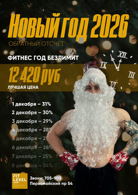 Готов к новым достижениям? Тогда зачем откладывать на завтра? Дневная годовая карта в FIT LEVEL: 10 000 рублей!