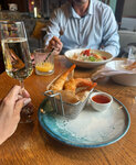 Отличный ресторан!!! Всё очень понравилось Обслуживание, интерьер , кухня! Я к сожалению мало ем, поэтому не могу оценить многое, но креветки и судак , которые я пробовала, были вкусными!Тарталетки с лососем замечательные. Проссеко, отлично вписалось в мой вайб, хочу отметить вкусные авторские конфеты , ну и конечно десерт, эклер мне понравился! Очень хорошо провела время! Благодарю девушку официантку, вы супер🙏🏻