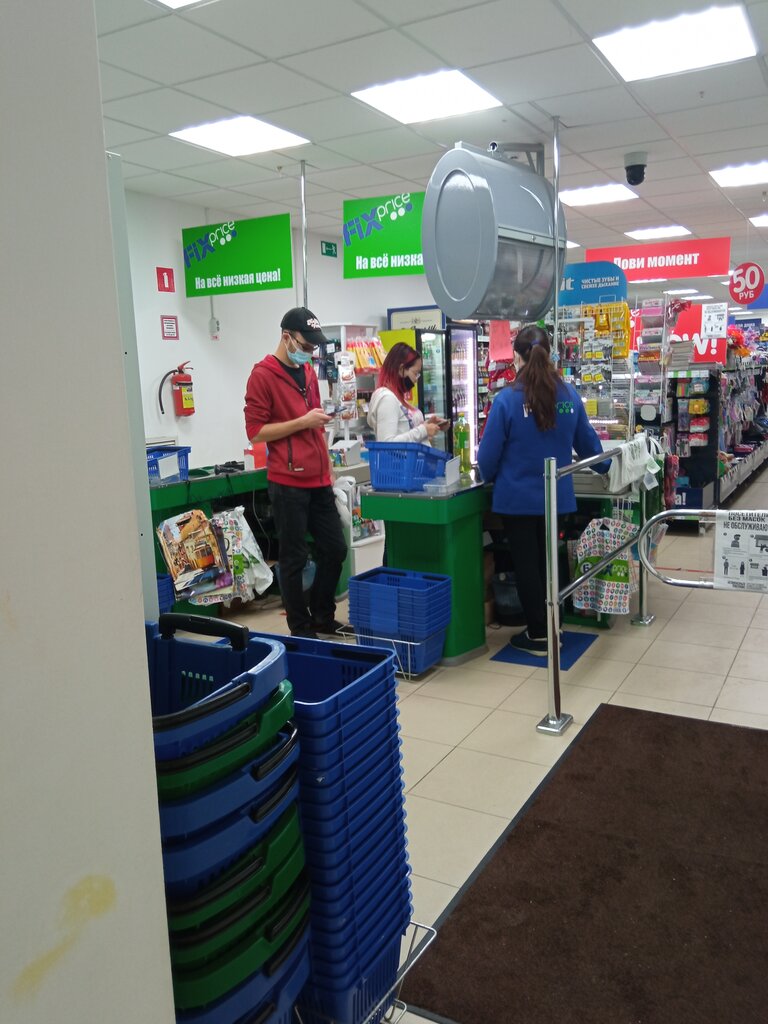 По сравнению с другими фикс прайсами ассортимент достаточно урезанный, кассир обычно только 1, очереди долгие из-за этого, но конкретно в этом месте он хорошо вписывается, потому что других магазинов в округе нет