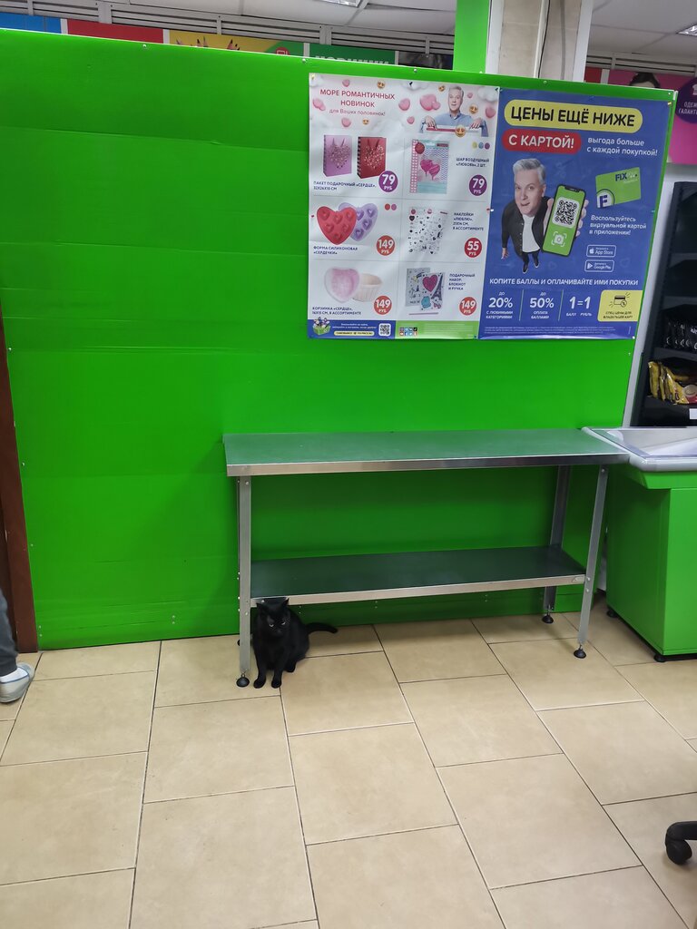 В фикс прайсе по адресу г. Усть - кут , Кирова 86 б постоянно на продуктах и на вещах лежит чёрная кошка, я подошла к администратору Жанне, попросила убрать кошку, объяснив мне неприятно покупать продукты на которых лежала кошка, на это получила ответ(все жрут и всё нормально одну меня не устраивает и мне сказали в икспрайс не заходить, раз меня кошачина не устраивает)