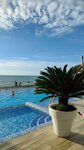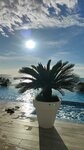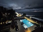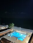 Бассейн этого отеля - одна из достопримечательностей адлерского променада)) когда в нем плаваешь, готовься стать звездой ру(ю)туба)) круто купаться в феврале. Весело ходить туда из корпуса Б через переулок в халате и зимних ботинках на босу ногу. Ниша выбрана круто: выше эконома, без претензий на люкс, со своей продающей фишкой (теплым бассейном). Номера один на один не приходятся. Нам достался зато с классными видом на море (не судите по фотке, она была не для красоты, а пристреляться, передаст ли фотка алый цвет заката, не передала))) летом должно быть волшебно, на смотровых террасах особенно (там, где кактус). Завтрак некрасивый, но сытный. В целом все бодро, но придраться будет к чему.
