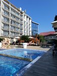 Удобное расположение. В шаговой доступности море и набережная, а также любые магазины, где можно купить все что нужно для отдыха. На завтрак вкусная разнообразная еда. Не менее вкусная еда в эко кафе (о нем чуть позже). Номер неплохой, только систему климат-контроля не перенастроили на охлаждение (в мае уже было жарковато) и сушилка в ванной была очень горячая. Инфинити бассейн напрямую выходит на набережную! Из него также видно море и красивые закаты. Вода чистая, температура круглый год +28 С, есть детский бассейн и джакузи. Рядом есть баня, которую готовят каждый день с 18 до 22ч. Вокруг бассейна много шезлонгов, имеются небольшие столики с QR кодами для заказа еды и напитков из эко кафе (находится на территории, его могут посещать не только гости отеля). Бассейн мелковат для взрослого человека, но вполне можно поплавать. Обслуживание на уровне, вежливый доброжелательный персонал. Спасибо всем сотрудникам, кто старался сделать отдых комфортным и приятным!