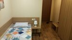 Одноместный номер чистый, есть кондиционер, в жару самое то! Также есть холодильник, телевизор, шкаф. Есть тумба в прихожей, удобно надевать обувь. Дополнительно завтрак за 300р. Санузел чистый. В общем 4+!