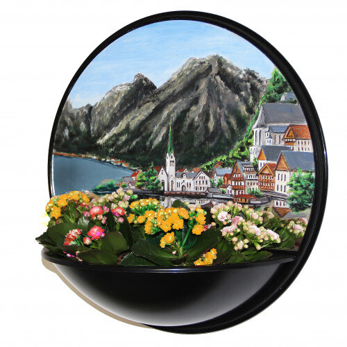 Диаметр купола 45см Круглый флорариум без рамы выглядит как диковинный светильник со своим живым миром внутри. Благодаря идеальной круглой форме и зеркалу в чаше он производит впечатление парящей на стене светящейся сферы. Он очень удобен небольшим