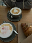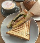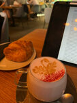 уютное место, из которого не хочется уходить. очень понравился латте малина базилик и лемонграсс, сэндвич с курицей и сыром( очень вкусно и сытно), ещё брали шоколадный круассан(не сухой, начинки много). от места остались только положительные эмоции
