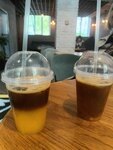 Открыли это для себя с мужем это кафе как место где к кофе относятся серьезно. Два года назад так и было, но последние два визита оставляют для нас это место в прошлом. На входе, встречает практически такая же духота как и на улице, основной кондей сломан, а дополнительный не справляется (ладно с кем не бывает). Суббота, в кафе 99% посетителей сидят работают за ноутами. Сбежал из офиса отдохнуть, но офис теперь повсюду... Заказали каппучино айс и бамбл кофе, которые, принесли буквально через 2 минуты после заказа! Каппучно айс оказался просто кофе с молоком и кубиками льда, никакой капучнковой пенки, по вкусу тоже очень посредственно. Бамбл кофе хоть и слоеный но, НЕ из свежевыжатого апельсина соответственно вкус уже не тот. Невкусный кофе в кофейне это провал... Единственное что понравилось это лавандовый чизкейк, но ради него одного, возвращаться смысла нет.