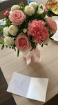 Заказала букет , сама с другого города и думала будет сложно , проблемы с доставкой на День матери Но нет, флористы заранее скинули фото готового букета Доставка была во время без задержек Цветочки все еще стоят , букет получился пышным , спасибо 🌺
