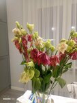 Купила маме на день матери букет из эустом, т.к. знаю, что они долго стоят. Так вот эти три ветки на следующий день уже выглядели вяло, первое фото на 3й день и второе через 5 дней после покупки. Нераспустившиеся цветы сейчас просто завяли зелеными. Это точно не стоит 1,5к, очень растроена.