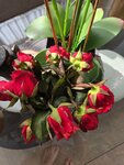 Оббегала вокруг все цветочные. Цветы либо "печальные", либо дорогие, либо букеты "на любителя" со всякими добавками колосьев или хлопка по заоблачной цене. И наткнулась на Floмастер, от ассортимента разбежались глаза, и цены от доступных до высоких. На любой вкус, цвет и кошелёк. Хотела букет чисто символический, и по адекватной цене. И я его нашла. Девочки очень приветливые и не навязчивые, не стояли над душой, а позволили рассмотреть варианты, посоветоваться с мужем по телефону и выбрать то, что нужно. На всех букетах есть цена, в отличие от других цветочных. И очень много интересных цветов. Рекомендую однозначно. На фото букет, который я выбрала, и ещё бархатные тюльпаны, я их увидела в первый раз в своей жизни, и они очень меня заинтересовали