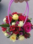 В 8 утра в магазине не было ни одного флориста( на минуточку, магазин круглосуточный). За кассой был пожилой мужчина, который ничего общего с флористом не имеет. Собирал данный букет 20 минут, пробивая всем остальным посетителям букеты вне очереди. Заплатила за такое чудо около 1500 рублей. Возможно, для кого-то этот букет будет отлично собранным, но обратите внимание на сборку цветов «по кругу» и на «бантик».