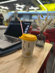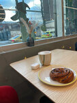 Забежала на какао и улитку с изюмом, приятное молодежное место с бодрой музыкой, очень уютно! Интерьер красивый, яркий, минималистичный, туалеты чистые (всегда смотрю на это в местах общепита) Отдельно хочется отметить персонал, вежливый и очень приятный голос у молодого человека, успехов вам 🔥