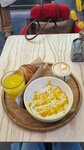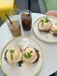 Брали сборный завтрак, очень понравился драник из батата, кофе также очень вкусный, ещё чизкейк. Сидеть не очень удобно, но еда, кофе и чизкейк были очень вкусные. Персонал приятный и доброжелательный, атмосфера прекрасная.