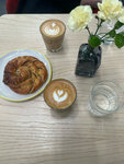 Очень нравится эта кофейня, когда нахожусь поблизости всегда забегаю. Зерна от отличного обжарщика, беру флэт, всегда качество на уровне, какое делают из бобов, немного горьковатое, но бариста всегда предупреждают об этом, я люблю такой вкус. Есть система лояльности, небольшая скидка, но приятно. Не могу сказать, что нравится еда в этой кофейне, порции не большие, но и цены держат на приемлемом уровне, блюда не впечатлили. Но я обожаю ваши классические круассаны, они идеальные, нежные, хрустящие, всем советую, это лучшее помимо кофе!