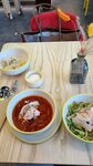 Мне данное кафе напомнило столовку советских времен, правда в улучшенном виде. Пространство и минимализм в интерьере, столики и стулья - всё это напоминает о прошлом. Работники молодые ребята, доброжелательные и милые. Обслуживание довольно таки быстрое. Заказывала сет из бизнес ланча за 650 рублей. Брала постные блюда. Мне понравилось, порции небольшие, но голодным не останешься. Из напитков ничего не брала, хочу зайти в следующий раз, после того как закончится Великий пост, и уже попробовать какой нибудь авторский капучино. Порадовала бесплатная питьевая вода из крана, это вам не в Кофемании. Дааа, и большая витрина с десертами, мой глаз упал на торт Наполеон, вот точно вернусь.