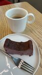 Американо прохладный на мой вкус и оч странная большая чашка для подачи, чизкейк черная смородина превосходный