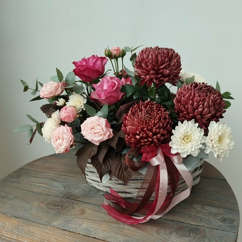 Цветы в плетеном кашпо