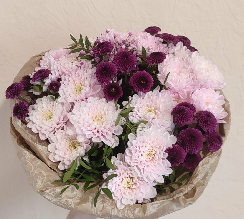 Муж подарил букет не дешевый, решила я убрать упаковку, вместо кустовых хризантем были обрубки из нескольких штук, стебли расползались на нити и были хрупкими, заломов много по стеблям.